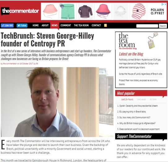 October 17, 2017 Uncategorized Steven George-Hilley being interviewed on launching Centropy Posted by Author This morning our founder Steven George-Hilley caught up with the owner of The Commentator Robin Sheppard to discuss the challenges of launching his own agency and how to deal with Brexit looming on the horizon. Share this: Click to share on X (Opens in new window) X Click to share on Facebook (Opens in new window) Facebook Like Loading...
